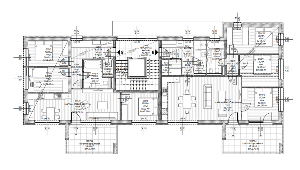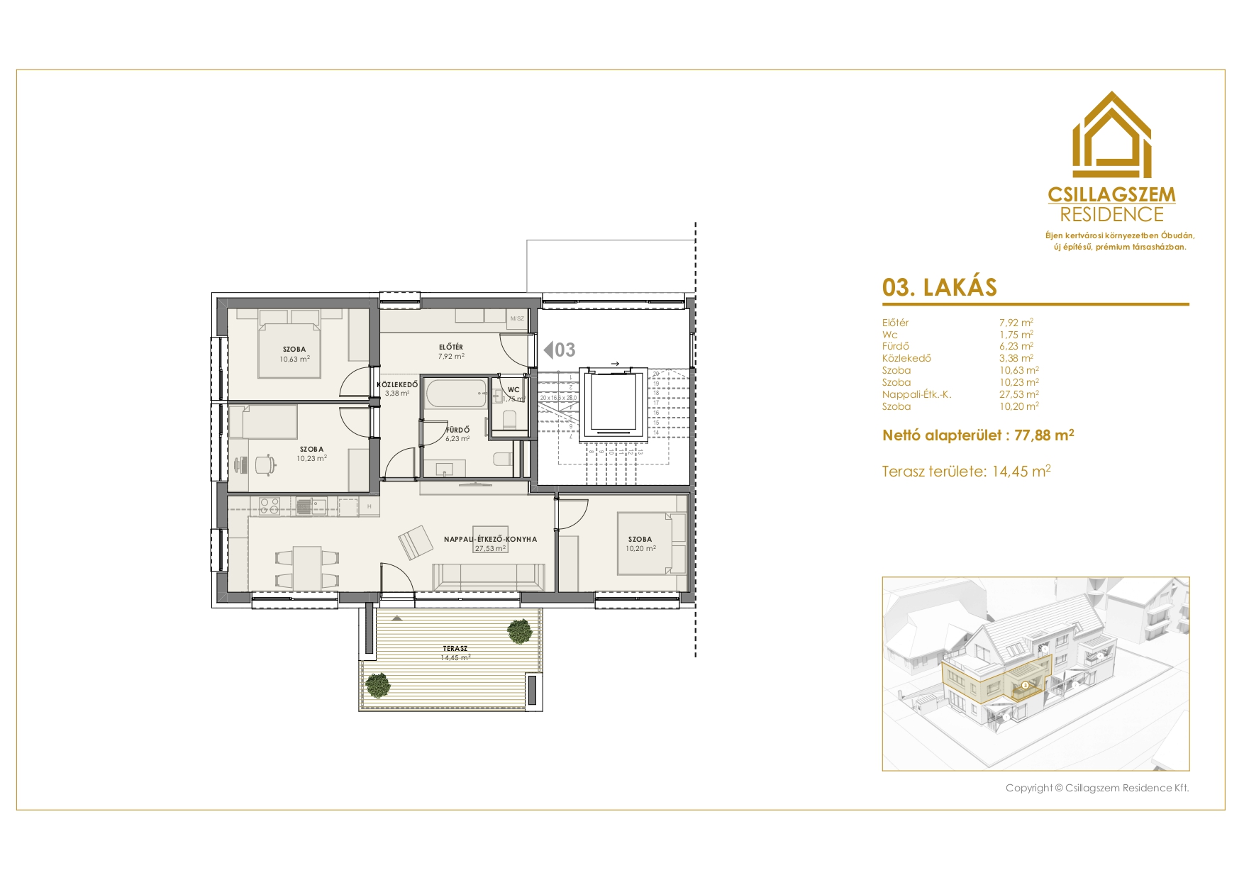 03. lakás: 77,88 m2 + terasz 14,45 m2