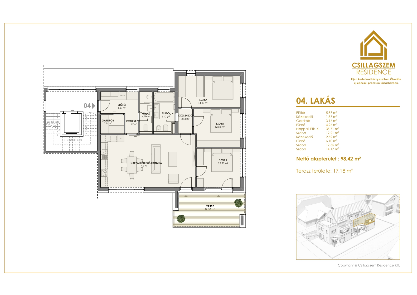 04. lakás: 98,42 m2 + terasz 17,18 m2
