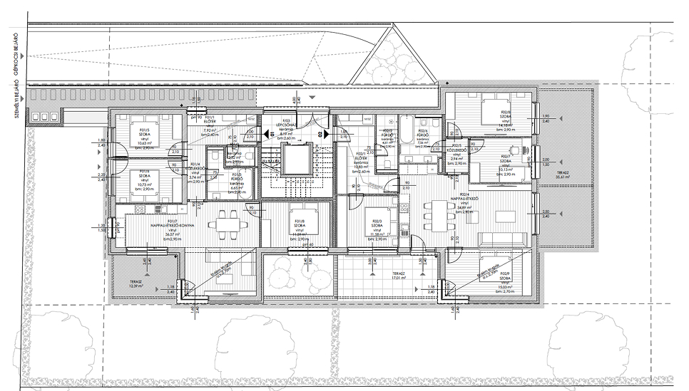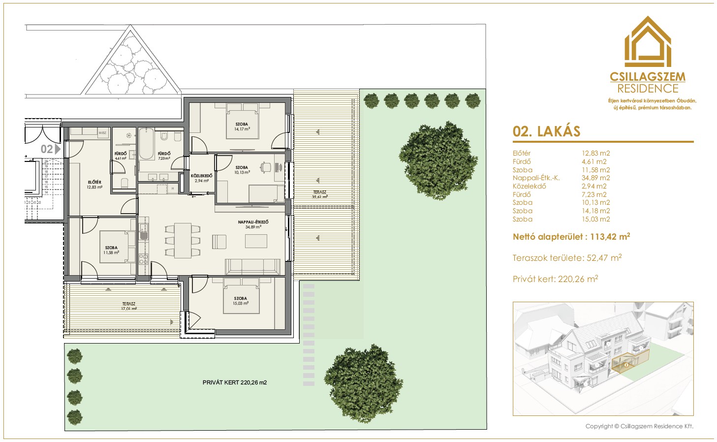 02. lakás: 113,42 m2 + teraszok 52,47 m2 + saját kertrész 220,26 m2